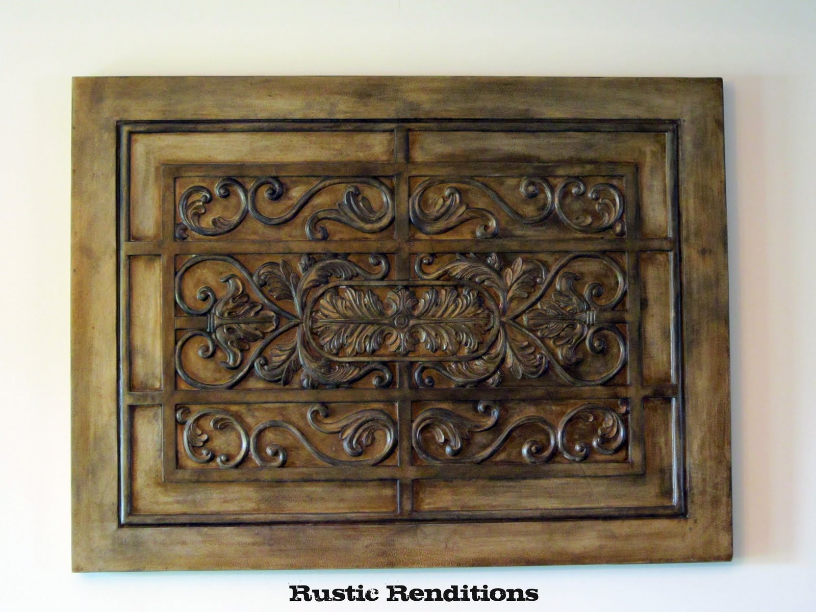 I love this most recent project so I'm pretty excited to show you. I picked up this really cool wall hanging that has an ornate carved detail to it. When I spotted it at the thrift store I knew I had to just grab it right then. The thing didn't even fit in my cart because it's so big, but I made it work just to get it up to the register. It had a small hairline crack in it so I asked them if they would take $10 for it rather than the original $15 tag it had. They said yes!